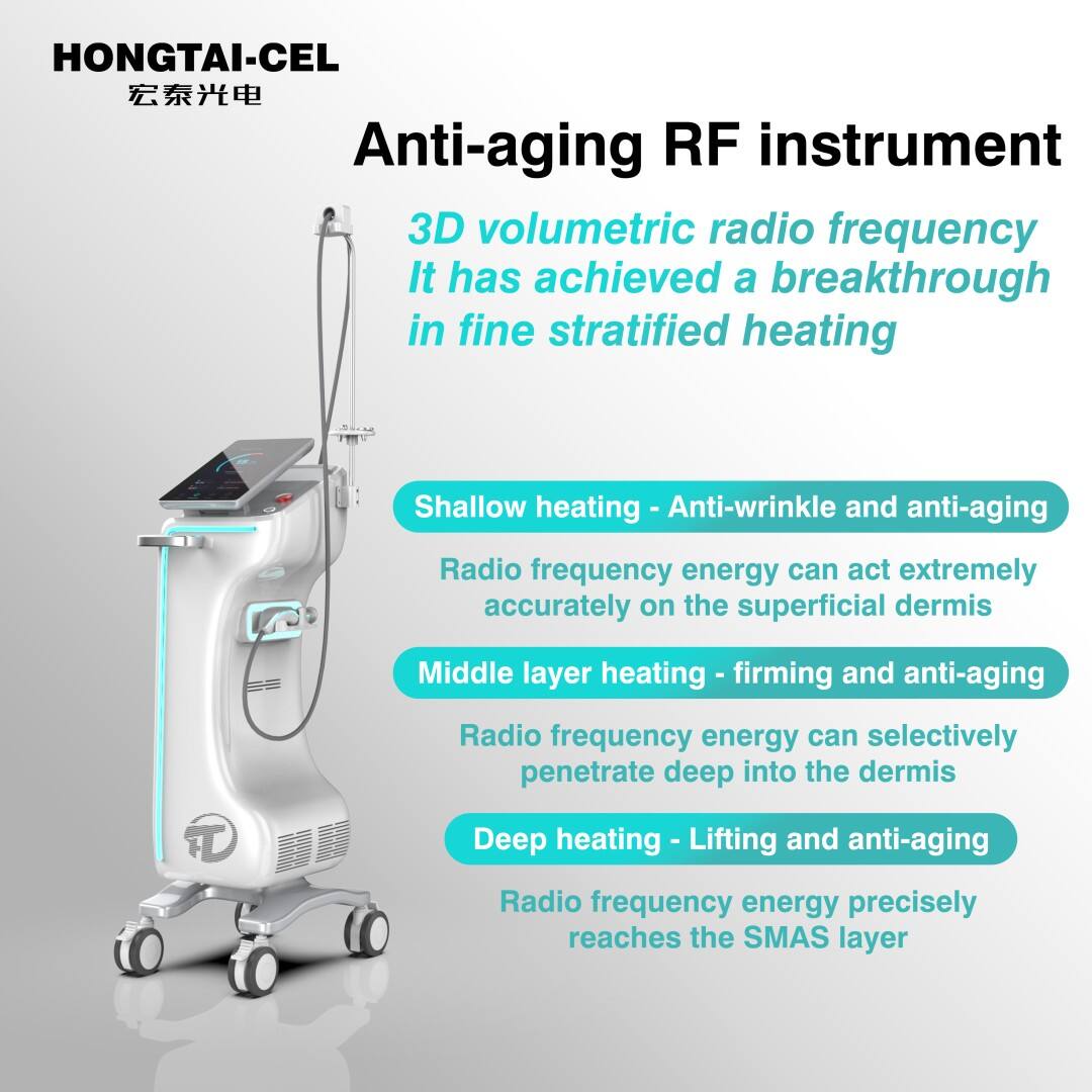 This professional 3D volumetric radio frequency beauty device is an all-in-one aesthetic instrument designed for high-end beauty clinics, spas, salons and professional treatment centers. It adopts advanced multi-frequency radio frequency technology, integrating 1MHz, 750KHz and 500KHz three precise frequency outputs to achieve layered heating at 1.5mm, 2.5mm and 4.0mm depth, covering from superficial dermis to deep subcutaneous tissue. By using non-invasive physical thermal effect, it quickly activates collagen contraction, stimulates continuous regeneration of collagen and elastic fibers, improves skin aging problems fundamentally, and brings long-term anti-aging, firming and lifting effects.